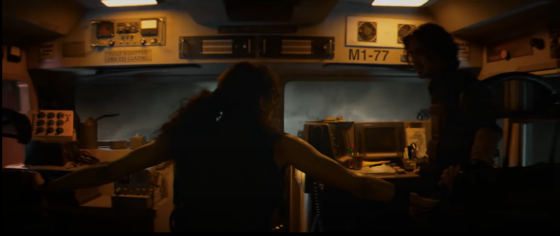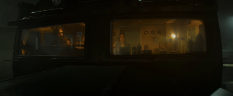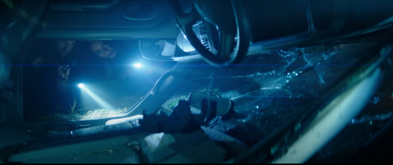 One of the first surprises here is that the overturned car we saw in the original trailer (which I had speculated might be a callback to Resident Evil 0) turns out to maybe be an R.P.D. van taken by Bravo Team. Jill and Chris are seen peering in, with Jill asking “Where are they?”. We still don’t really know much about Bravo Team in this film, with only Enrico and Kevin being confirmed by casting (Richard has been upgraded to Alpha Team in this film). It’s a bit odd that Bravo seems to have taken a car while Alpha took a helicopter, but maybe the idea is that it’s an emergency and they may have to air-lift people? Guess we’ll find out.