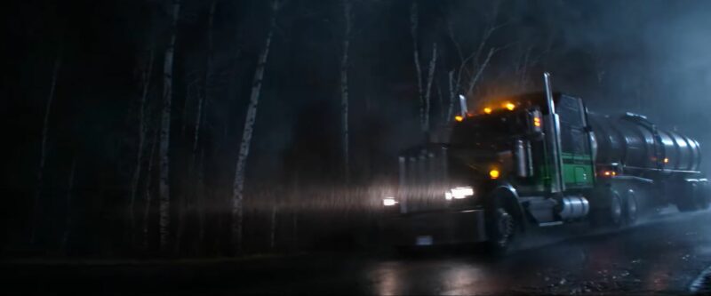 To start off with, right off the bat we have a recreation of Resident Evil 2 Remake‘s tanker truck, and the zed the driver absolutely splatters. The truck is pretty much 100% faithful to the game, which I commented on months ago. Unlike the game, Claire has hitched a ride with him on her way into the city, and they have a conversation about the state of Raccoon — namely, that it sucks. They pass by the iconic Welcome to Raccoon City sign, however, it now sports a “Fuck Umbrella!” tag (the fuck is censored for the sake of the trailer, but the full sign was shown off on Twitter yesterday). We also see that the film is set on September 30th, which (in the game universe) places it between RE2 and the ending of RE3, so that’s actually kind of a cool way of literally representing the middle-ground here.