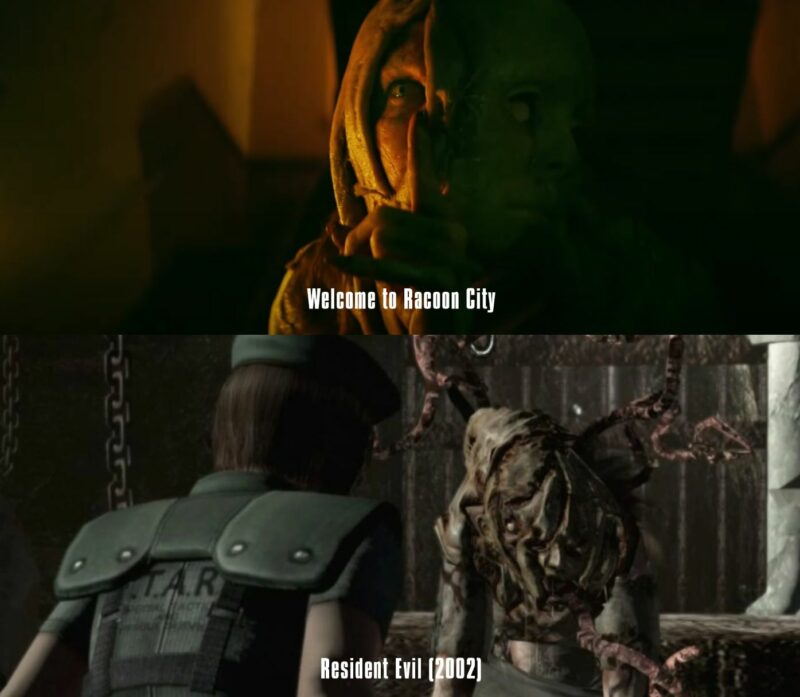 Meanwhile, back over in the US trailer, we get a shot of the beloved creature Lisa Trevor, which was already shown in the trailer’s teaser yesterday. Unlike her game counterpart, Lisa appears less decrepit and seems to be slightly more cognizant. Lisa of the games could still speak and even write, but it was garbled monster/child speak, as Lisa was caught between the ravaging the virus had done to her mind, and the fact that all of this had been done to her when she was a child. That said, I suspect Lisa shushing here may be a sign that she’ll still be very childlike in her personality.
