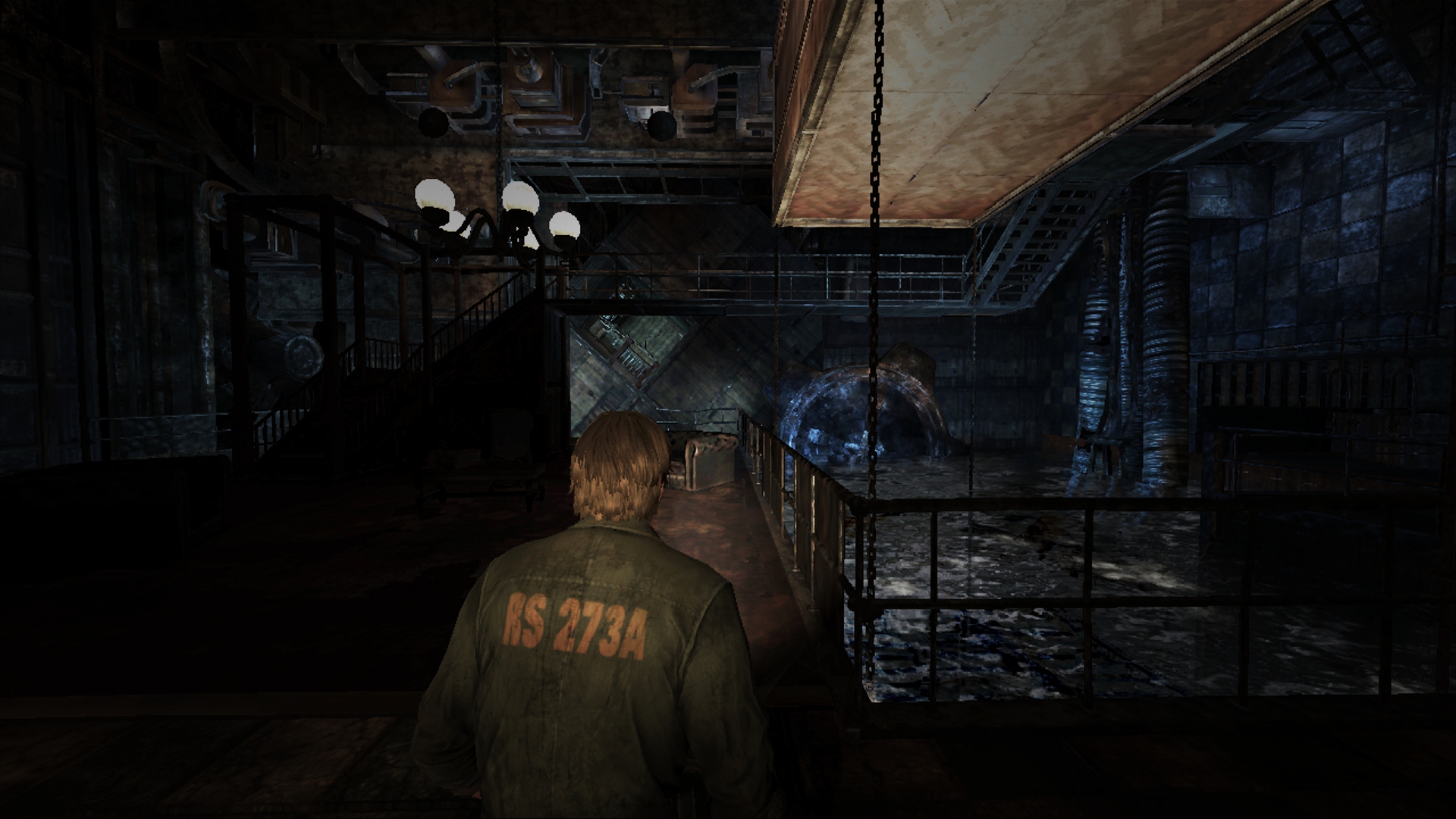 After escaping from the presence of The Void, we ended up in a descending hall that acted like a slide. In past demos, the slide portion was much shorter, but we got a look at an extended version. Murphy can be controlled so he can avoid walls or objects while in descent. At the bottom of this slide was one the game’s first environmental puzzles. This room was being shown for the very first time. We had a look around, and then was treated to the song Born Free. The old tune played through a record player that had no purpose to be in a place such as this. But this is Silent Hill after all; a perverted sense of feng shui is a series staple. The song made this area very unsettling. Born Free might be what many convicts listened to on the radio. The song became popular in 1966. It’s hard to ignore that many objects and furniture in Downpour have a distinct retro look. It’s almost as if the town’s theme is being influenced by the 60’s or earlier. The story significance of this is something I am wondering about.
