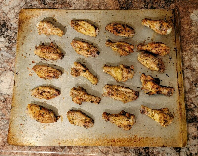 The chicken wings were cooked on a propane grill at 400°F for a total of 16 minutes, flipping them over every 5 minutes. They had a pleasant, mild, herbal taste. This rub wasn’t as strong as the other two, yet had a distinct flavor with noticeable hints of parsley and sage.