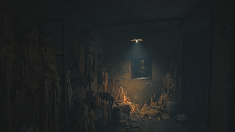 Moving on to the next piece of entirely new content, the Musician’s Story is effectively a new DLC for the original Layers of Fear, from the perspective of the wife/mother of the story, and this Story ends up being much more enjoyable than both LoF and Inheritance. This Story also uses the lantern/pursuing enemy mechanic from the updated LoF 2023 to pretty great effect and has a little more puzzles and atmosphere than the other LoF chapters, with some very striking visuals that heavily use the metaphor of metal chains and shackles to represent many aspects of the character’s struggles with mental health, physical health, motherhood, societal expectations, and many other issues that befall her.