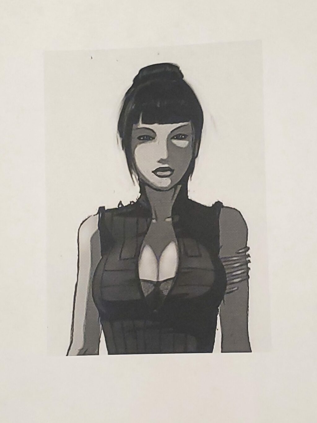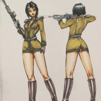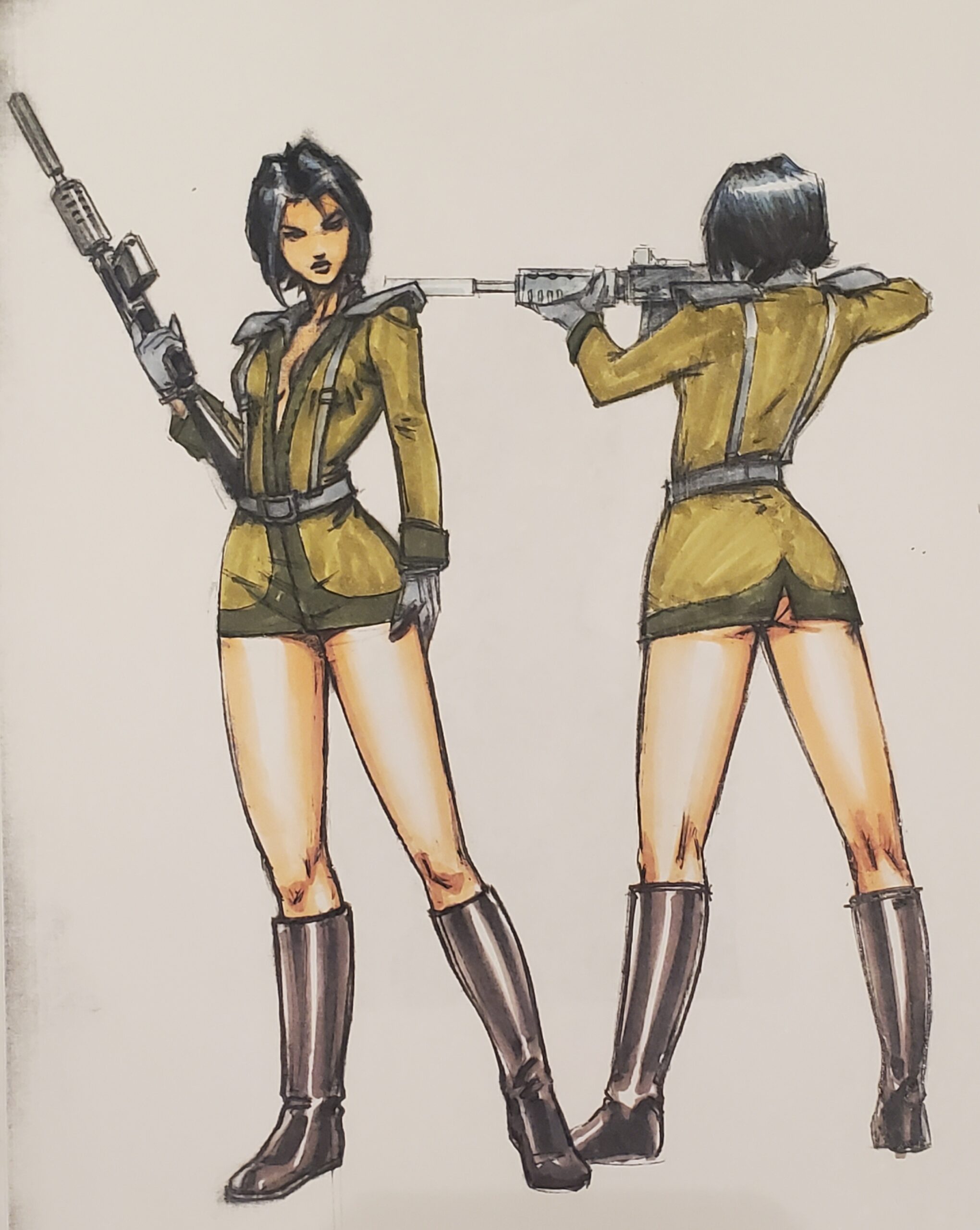 Joan Igawa: It was mostly just characters and some of the animation for the cinematics. Before your call, I was looking over flat files of the original artwork. We have a plethora of sketches, original drawings, and designs from both Fear Effect games. John did a lot of not just the characters, but also a lot of props and weaponry. Pakin did some character design, as well as backgrounds and vehicle designs.