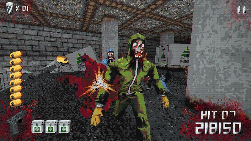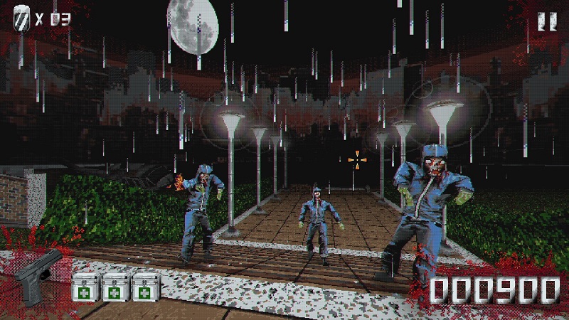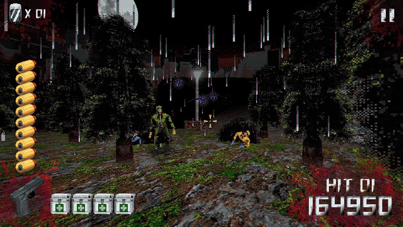 Dithering, texture warping, and everything else that comes with this type of low-poly, 32-bit 3D aesthetic is on full display here and does a great job taking you back to the glory days of the 3D light gun craze.